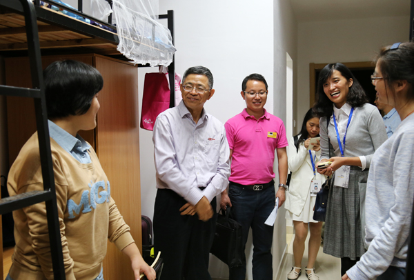 校领导走访学生寝室探望新生和家长