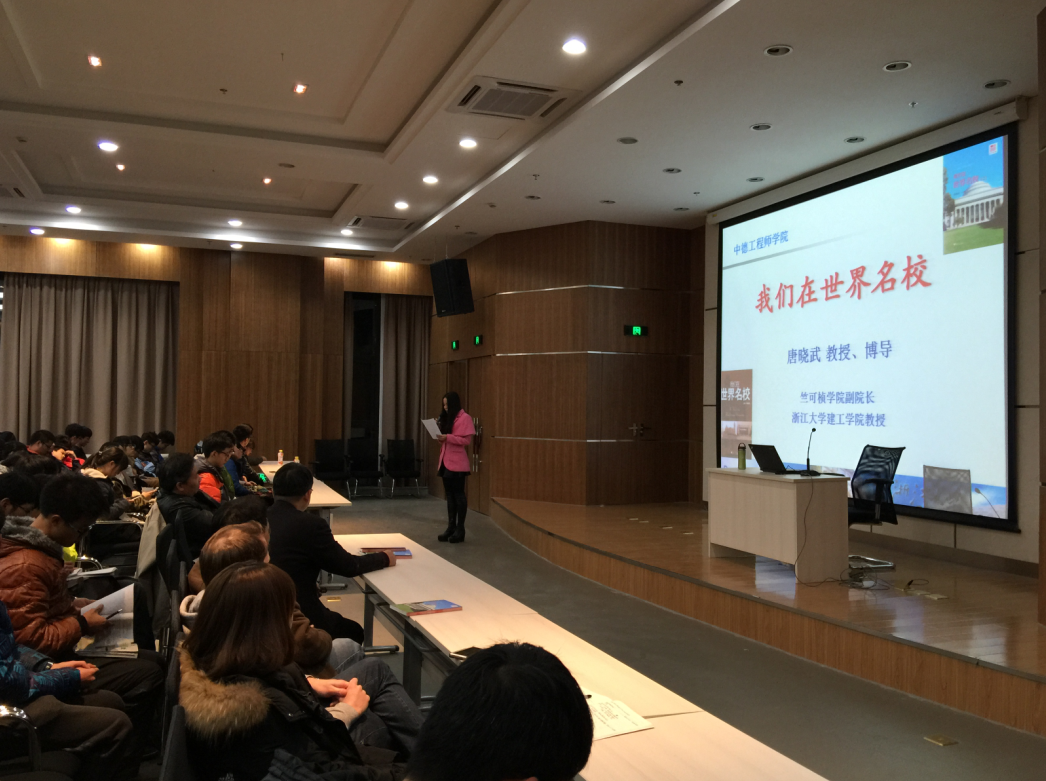 本次讲座主题与唐教授2011年出版的书籍《我们在世界名校》同名,书中介绍了12位分别在不同知名大学留学的唐门弟子在留学前期的准备,以及他们在世界名牌大学的生活、学习与研究。由于获得良好的社会反响,唐教授的《我们在世界名校(二)》也已于今年12月出版。