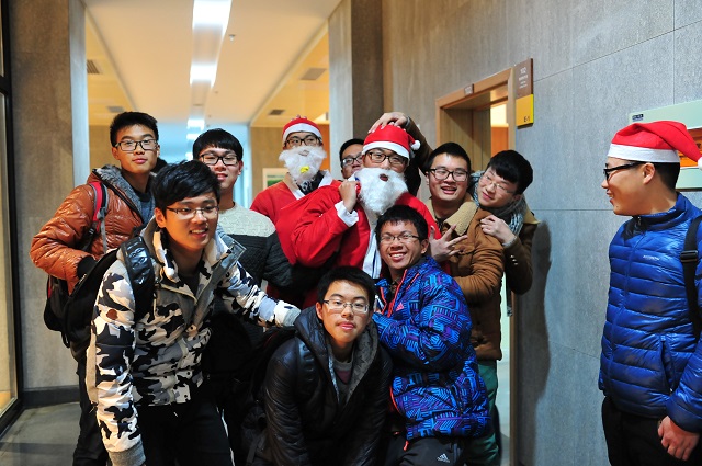 20141224日晚,中德工程师楼E楼里不断传出悠扬的圣诞音乐和人群的欢声笑语。这个特别的夜晚,是西方传统文化中的圣诞节平安夜,也是专属于av片 师生们难忘的平安夜记忆。