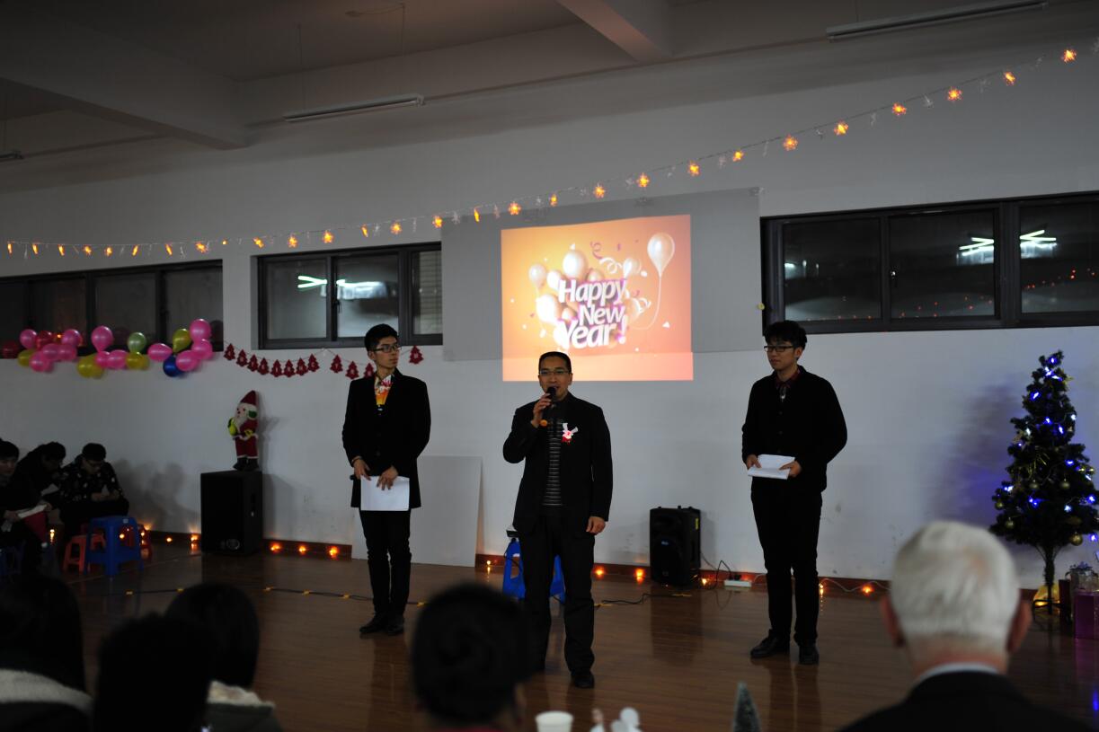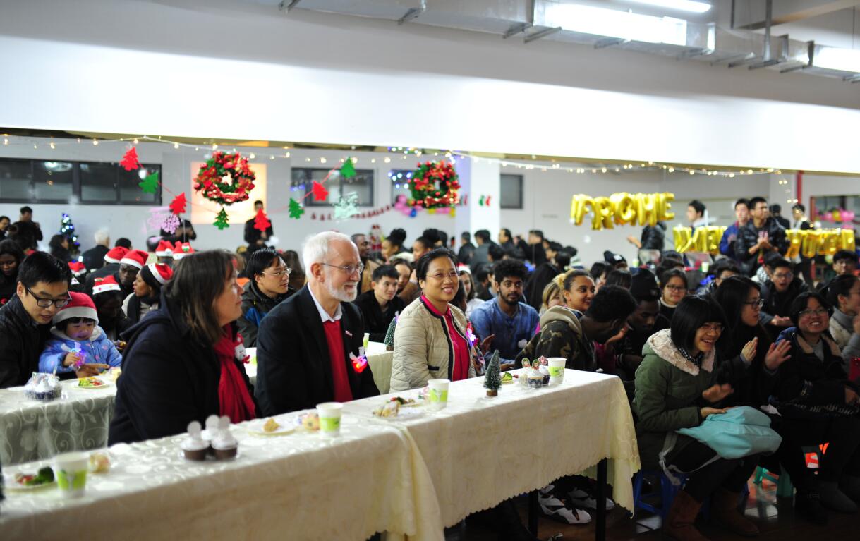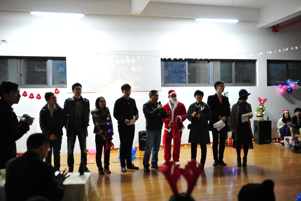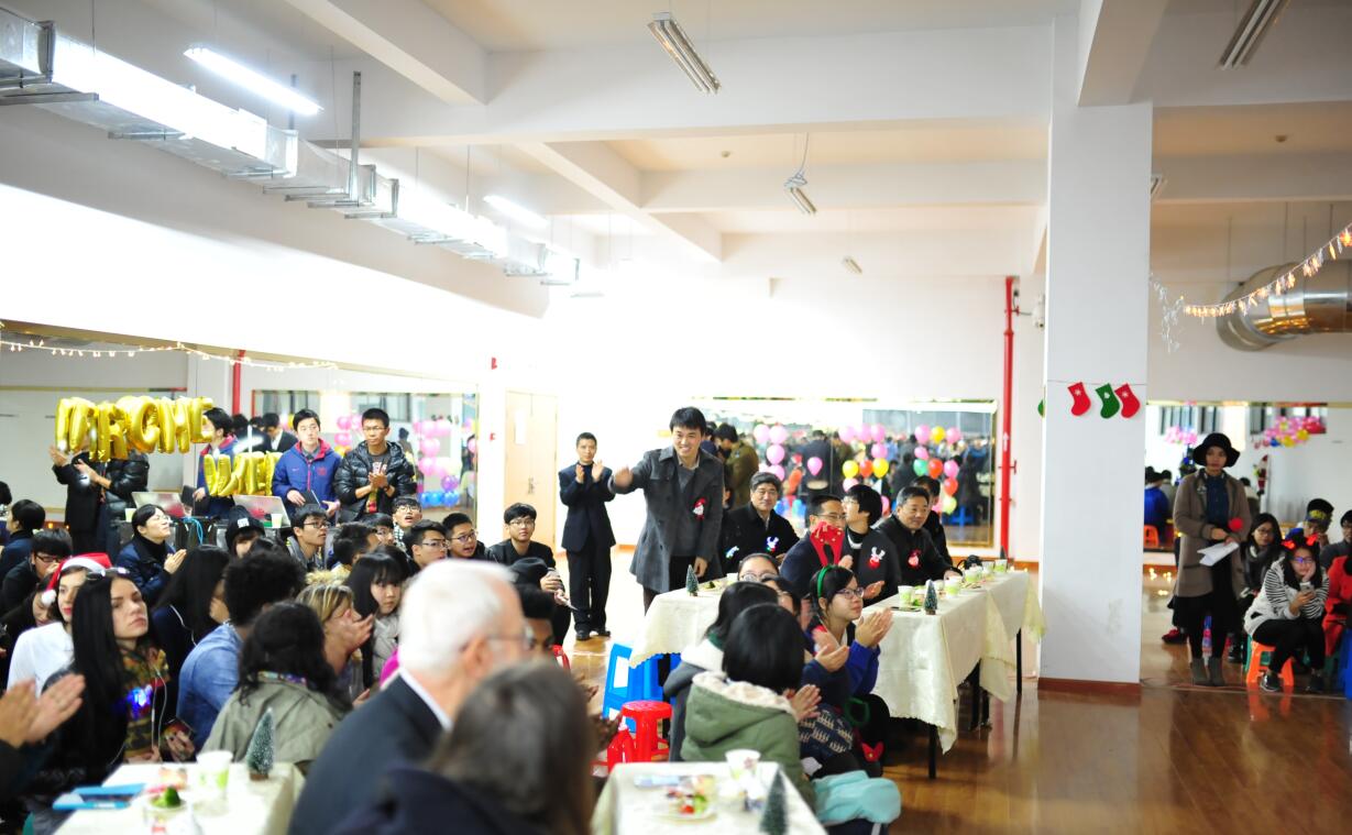 欢声笑语中,精心准备的节目一一上场,或是有趣可爱的新编小红帽,或是宁静安好的圣诞歌颂,等等之类的都深深地留在了每个人的心中。平日里安静的男生们走起台步确有一番风趣,绕起舌头说着口令……更有外国来宾展现了他们的风采,热情洋溢的拉丁表演与纯人声合唱惊艳四座。英姿帅气的男主持们和温婉可人的女主持更为整个晚会添色不少。