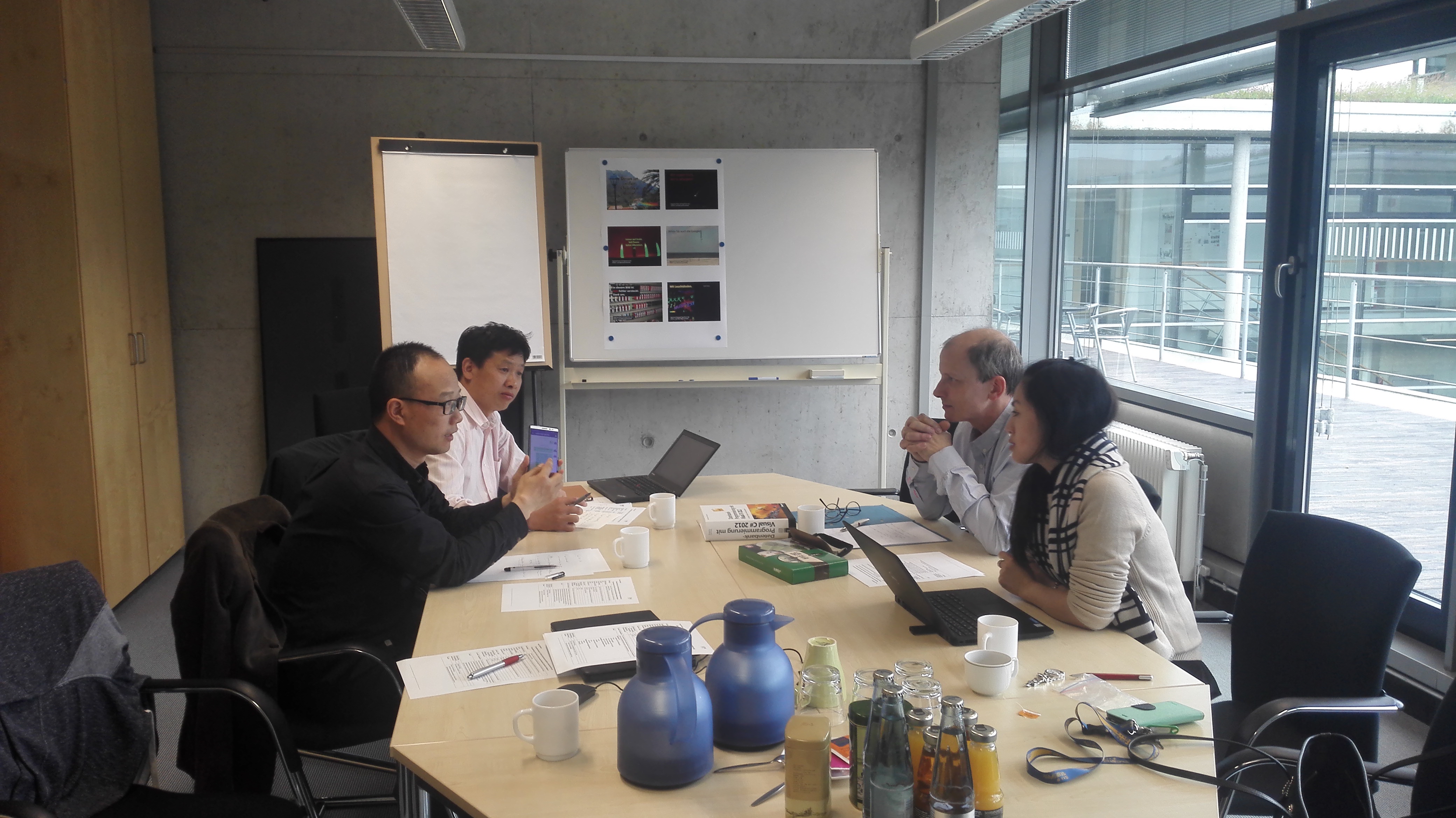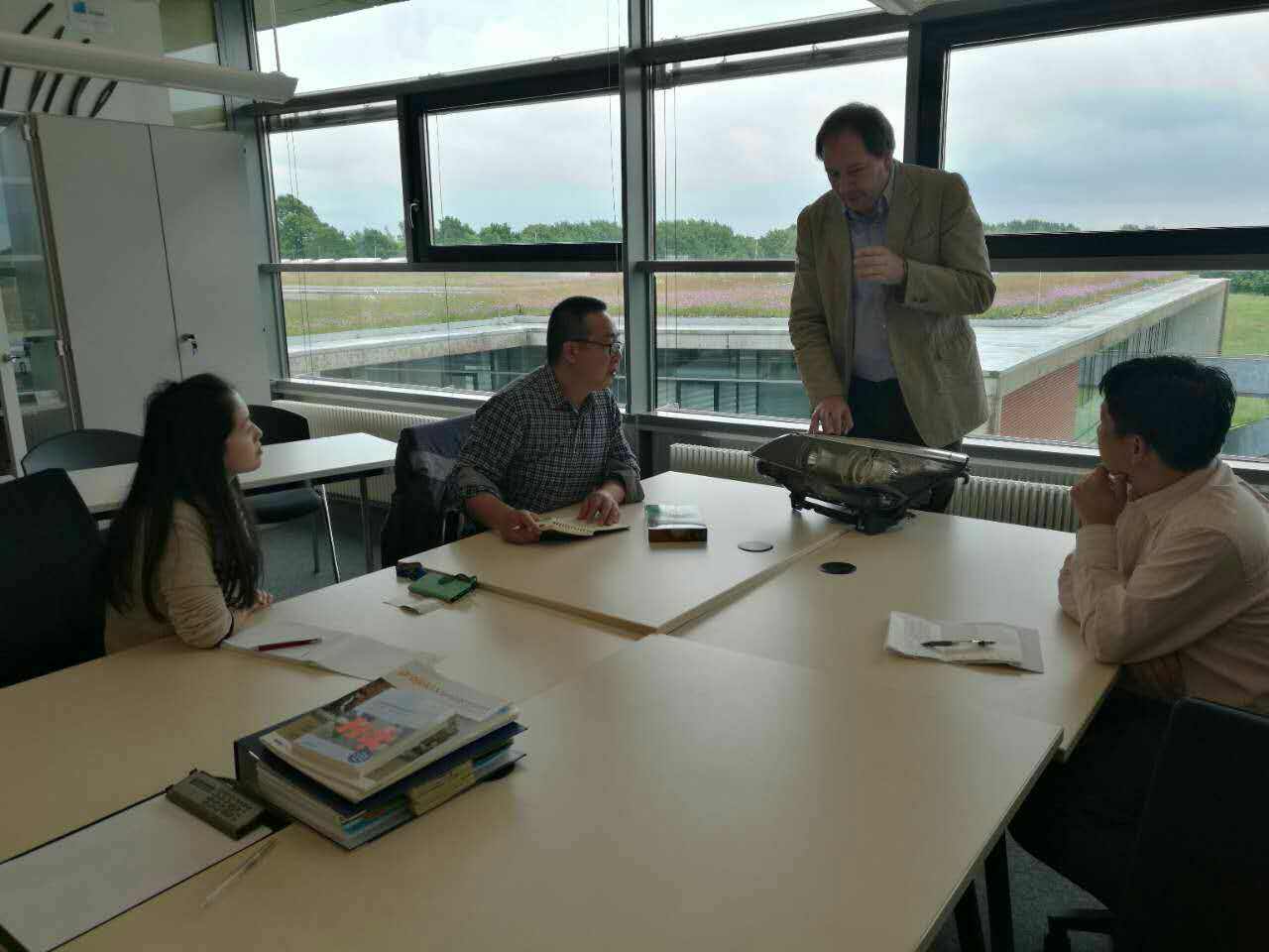 av片 教师程志刚、周广平和德方Blaue教授讨论C#和标准商务编程模块课程