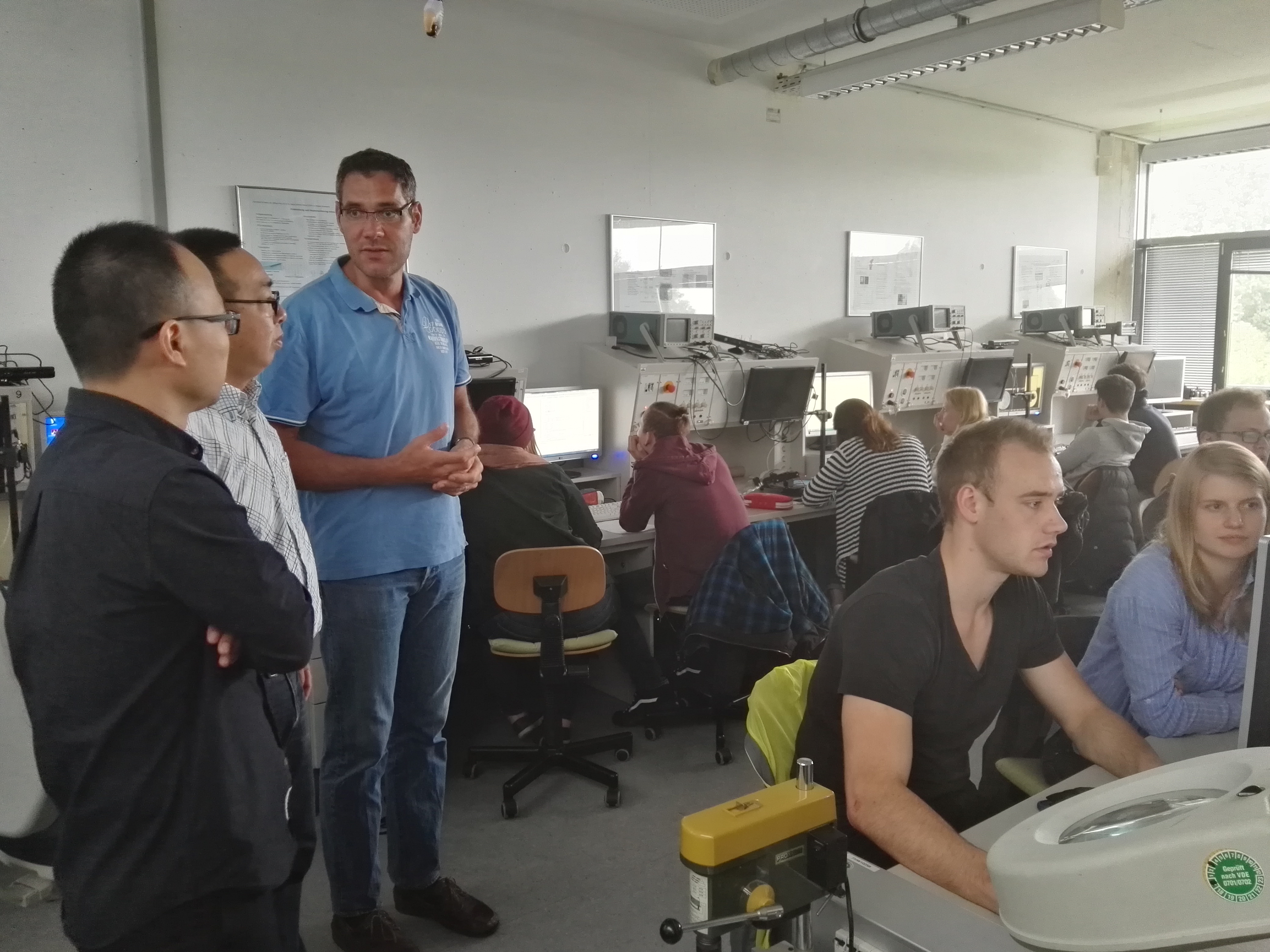 访问期间,我方教师同多位德方教授进行了有关课程教学和实习教学的探讨,进一步了解了德国西海岸应用科学大学合作专业“管理与技术”(MUT)的总体教学情况、实验室情况以及相关教学要求。中方教师同德方布劳恩(Blaue)教授重点探讨了C#课程的教学,围绕课程考核方式的改革开展了引入项目式考核的探讨,并现场观摩德方穆勒(Müller)教授的“标准商务编程”的实践课程,同德方实习负责人艾伯格(Ebberg)教授深入探讨了EAM(电气工程及其自动化专业)学生的实习模块教学及赴德学生的实习教学与答辩的衔接问题,以及同MUT专业负责人瑞兹(Rietz)教授探讨了赴德学生的跨学科项目和高级项目教学的开展。此外,中方教师还同德方工程学院院长廷森(Jensen)教授讨论了av片 的实验室建设问题。