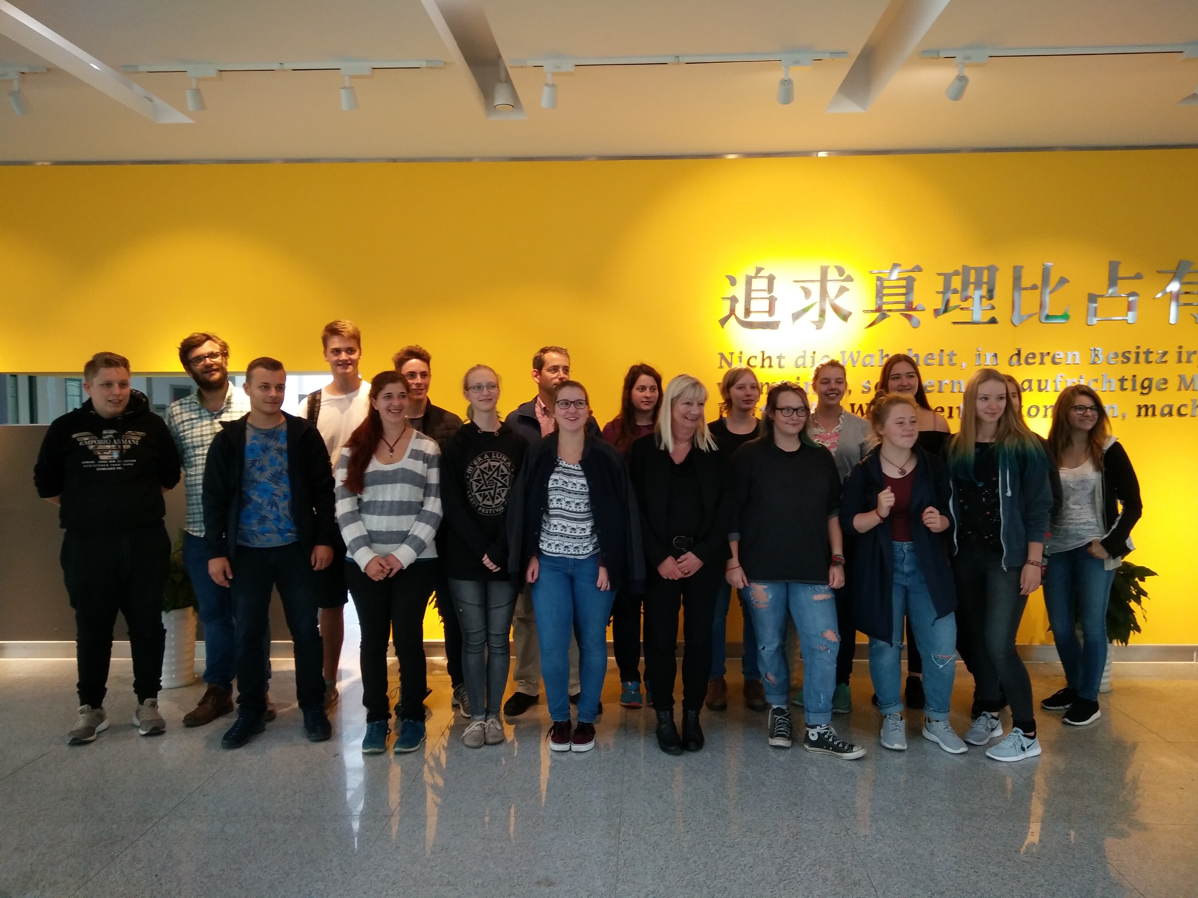 10月13日中午,在中方项目协调员安德鲁斯·哈姆斯(Andreas Harms)、迈克尔·斯达姆麦尔(Michael Stammeier)、部门主管芭芭拉·布克斯(Barbara Bucksch)的带领下,来自德国北部石荷州小城奥伊廷(Eutin)职业中学的学生代表团一行19人来av片 进行参观和访问,av片 院长徐理勤、教学院长弗兰克·坎伯(Frank Kemper)、党支部书记李成炜及相关教师参加了见面交流会。