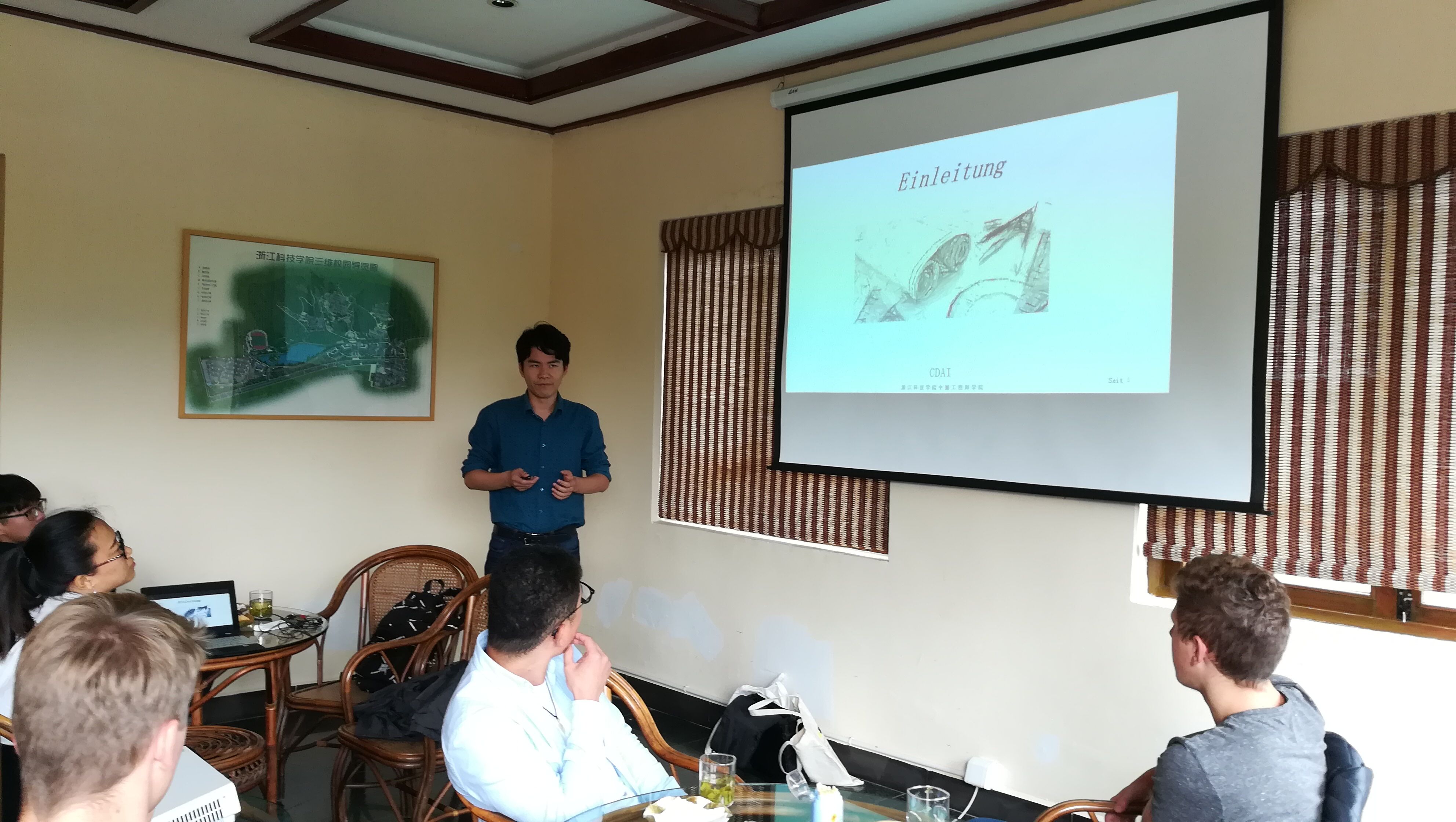 会谈期间,av片 院长徐理勤和教学院长弗兰克·坎伯向德方代表团详细介绍了av片 建设历程、专业设置和学生交流项目等情况,并且av片 四名土木工程和电气及其自动化专业学生代表全程用德语向德国中学生介绍本专业特色以及自己的学习心得,氛围十分融洽,深受德国同学的好评。