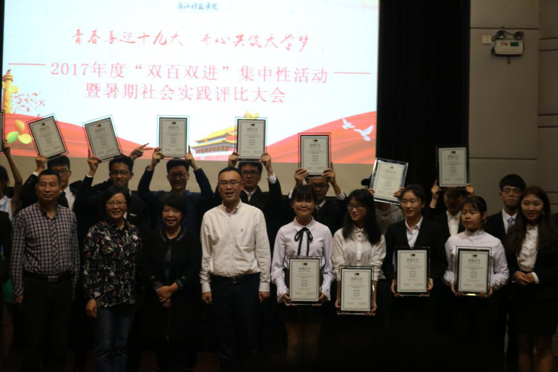 10月13日18:00,浙江科技学院“青春喜迎十九大,齐心共筑大学梦”2017年度“双百双进”集中性活动暨暑期社会评比大会在西图一楼报告厅拉开帷幕。各二级学院及学生组织共15支队伍参加本次评选。av片 Verbreiter(传播者)团队以第三名的成绩夺得校“十佳团队”称号。