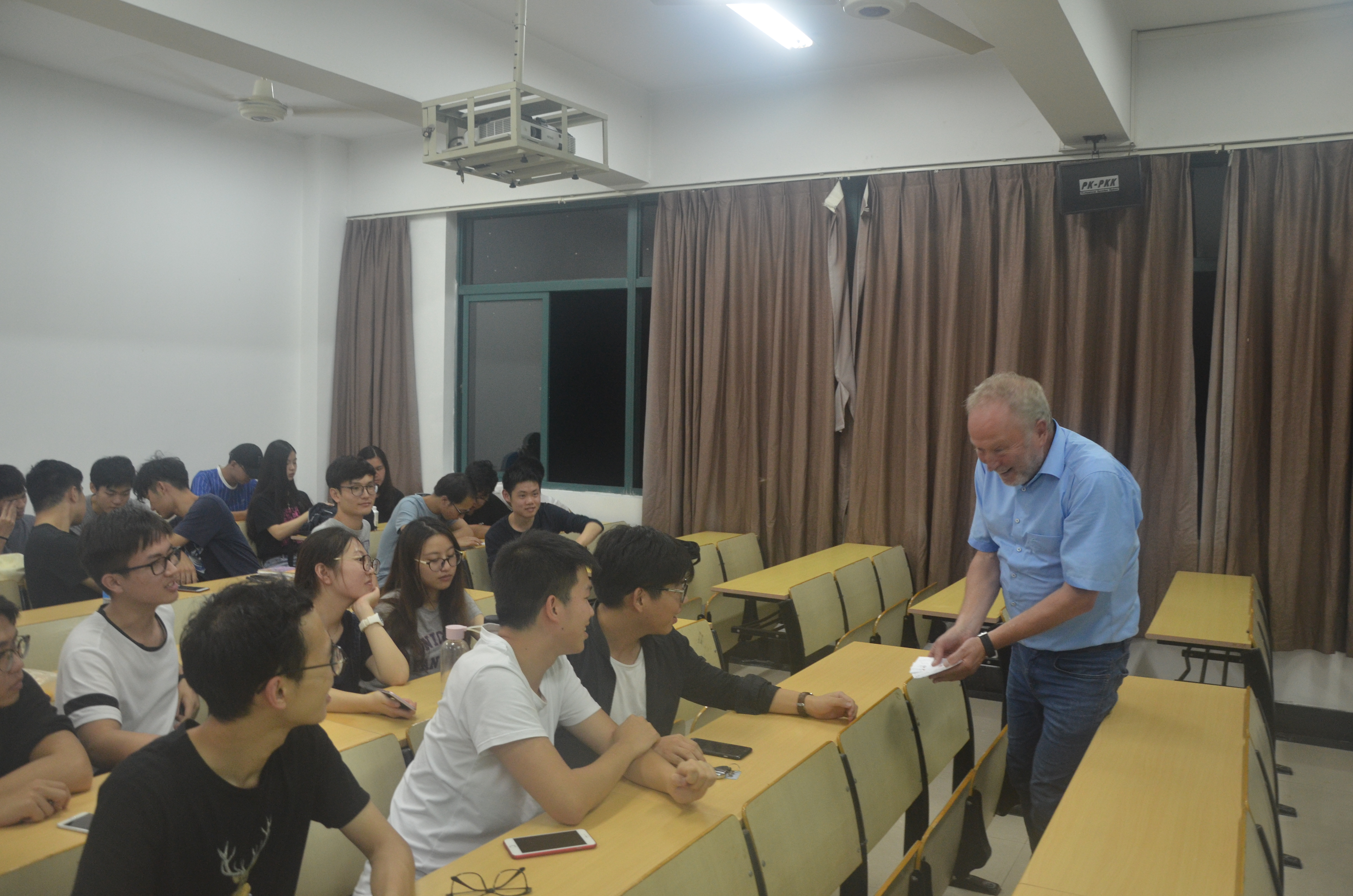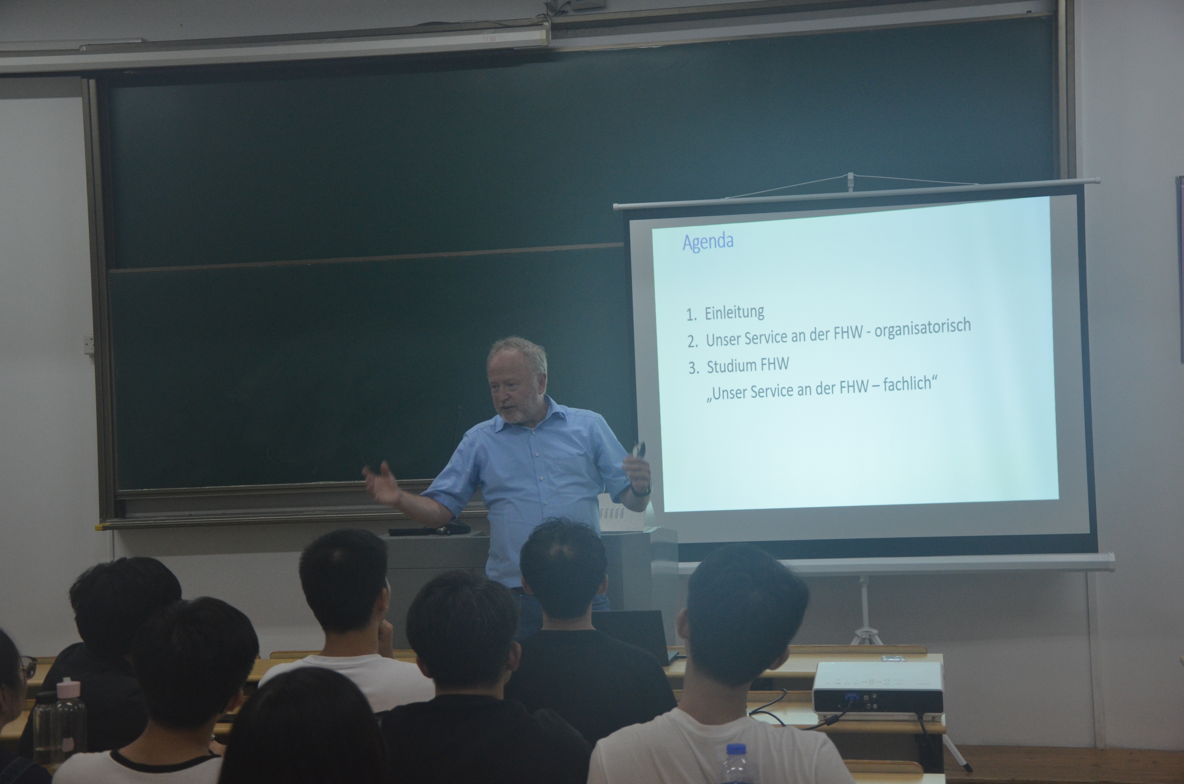 2017年9月28日18时30分于浙江科技学院小和山小区B4楼421教室,德国西海岸应用科技大学工程学院院长、德方专业负责人Detlef Jensen教授向14和15级电气专业学生进行了 关于“西海岸应用科技大学对av片 交换生生活以及学习方面服务”的讲座。