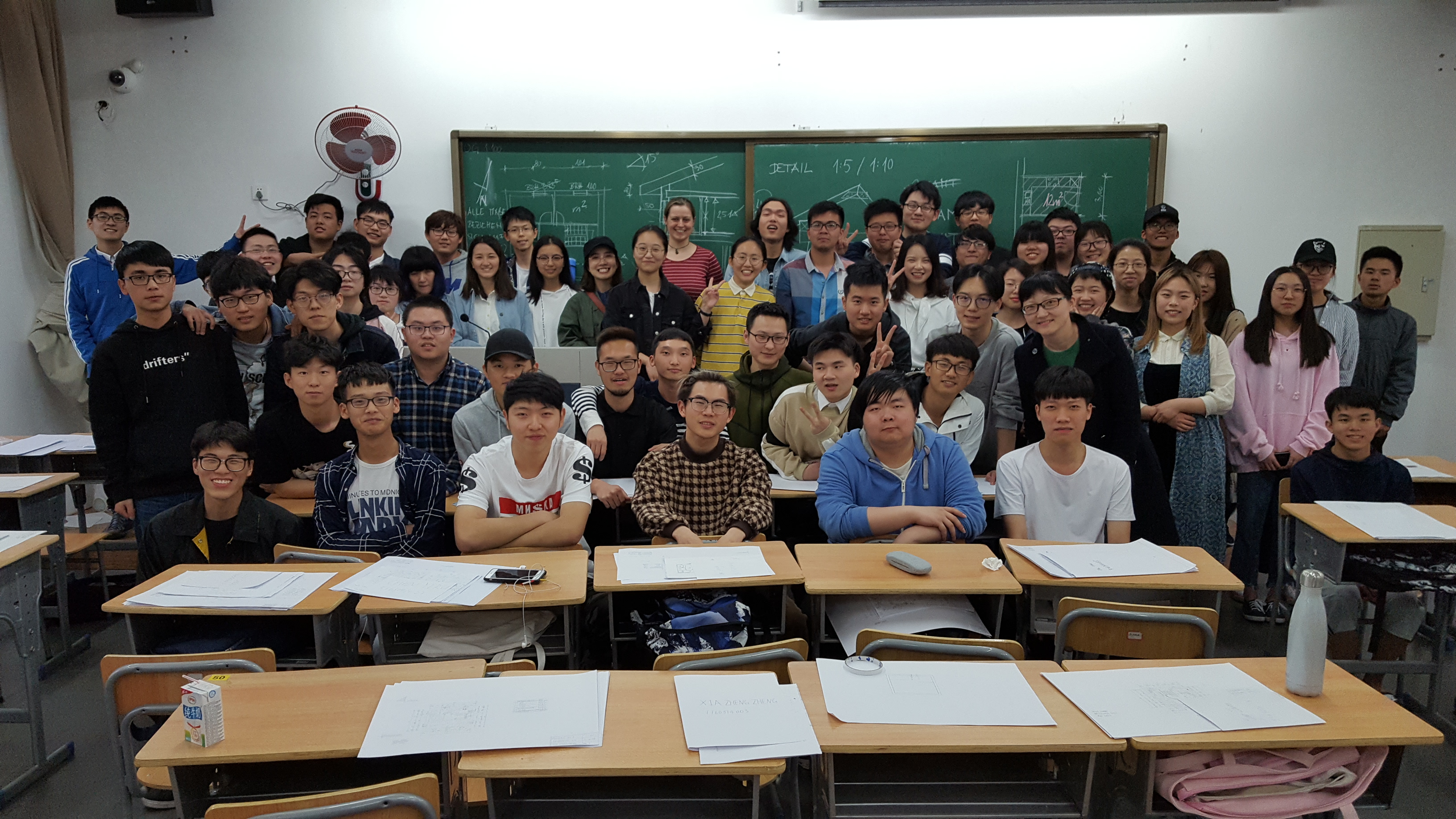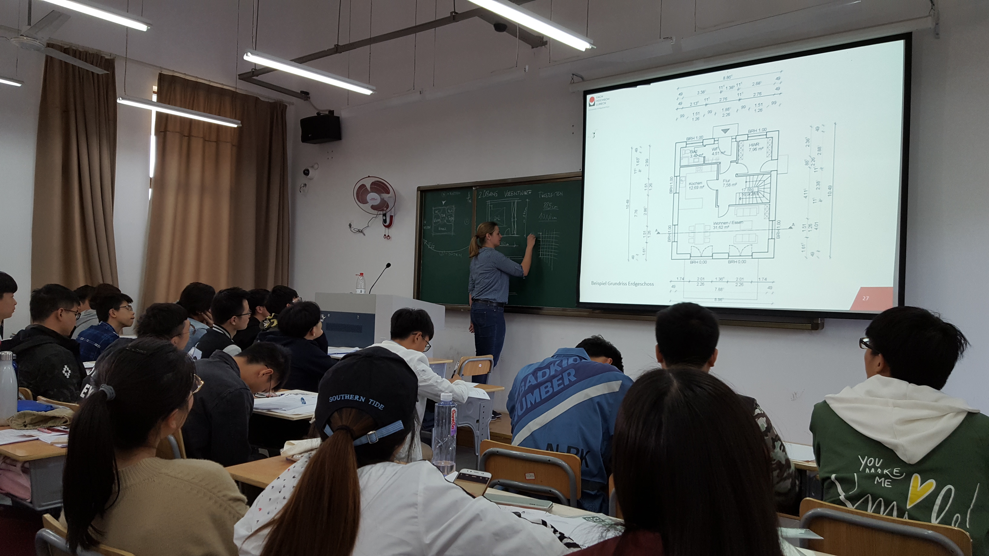 2018年4月9日,来自德国吕贝克应用科技大学的助教Jan Osten与Wiebke Martensen,为av片 土木工程专业2016级学生讲授为期一周的建筑构造补充课程。在一周时间内,两位教师充分安排时间进行课程设计教学,以德国普通家庭住宅为例,从最基本的气泡图开始进行设计,逐步将学生心中想象的住宅实现为实际建筑施工图。