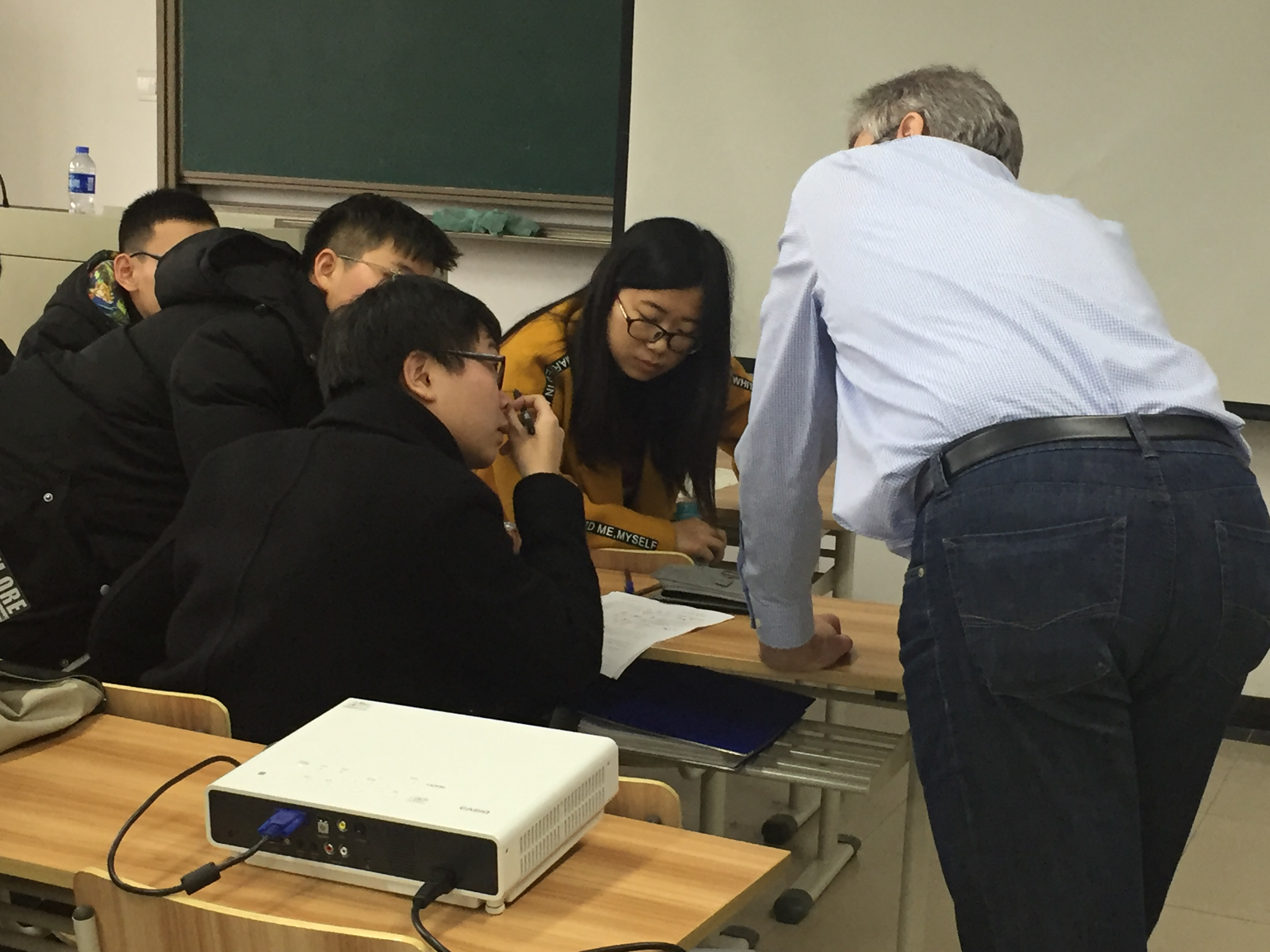 3月5日上午,德国吕贝克应用科技大学的Offermann教授开始为av片 15级土木专业的同学讲授为期三周的《项目管理》课程,教学以课堂教学为主,并用视频播放的方式加深同学们的印象。这是15级土木专业的同学第二次接受德方教授的集中授课教学了。同学们对于长时间而又高强度的德语教学早就有了心理准备,在上学期就已经对德语专业名词进行了系统的学习,对于专业课的德语词汇有了一定的积累。上课也能更多地听懂教授的讲解。同学们上课认真听讲,下课能与教授积极探讨问题,同学之间互相交流疑问,教室里洋溢着浓重的学习氛围。