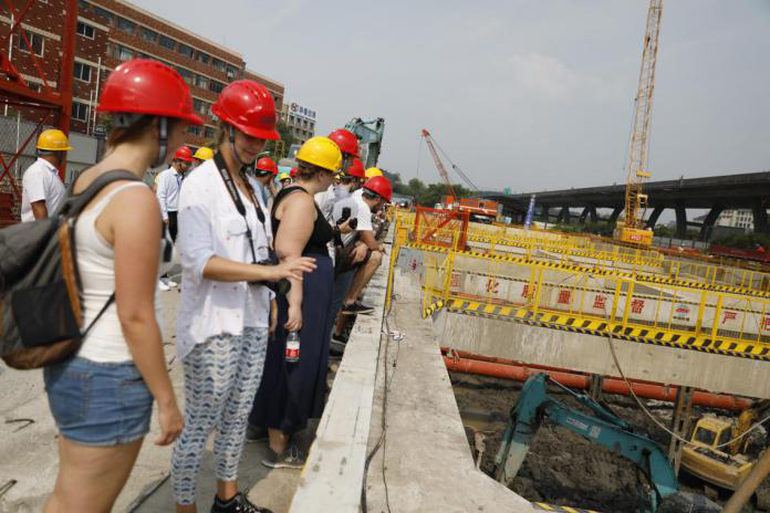 av片 专门安排了土木工程专业教师带领德国夏令营团实地参观工程项目,其中包括杭州至临安城际铁路工程JLHL-5标段南湖新城站项目、安吉的碧桂园翰林府项目及春天尚居工程,部分CDAI学生也跟随其中。参观过程中,德国学生与教授对于在中国工地上看到的不同的施工工艺兴致浓厚,两国学生就地连墙的施工工艺、中德两国在钢筋混凝土框架结构中墙体材料的选用及保温隔热性能等方面展开了深入的探讨,气氛融洽。德国夏令营团还参观了杭州与安吉校区,展示了教室、食堂、实验室与咖啡吧等场所,对于国内学生的生活与学习环境有了基本了解,部分学生表示有兴趣来av片 参加交换生项目的学习。