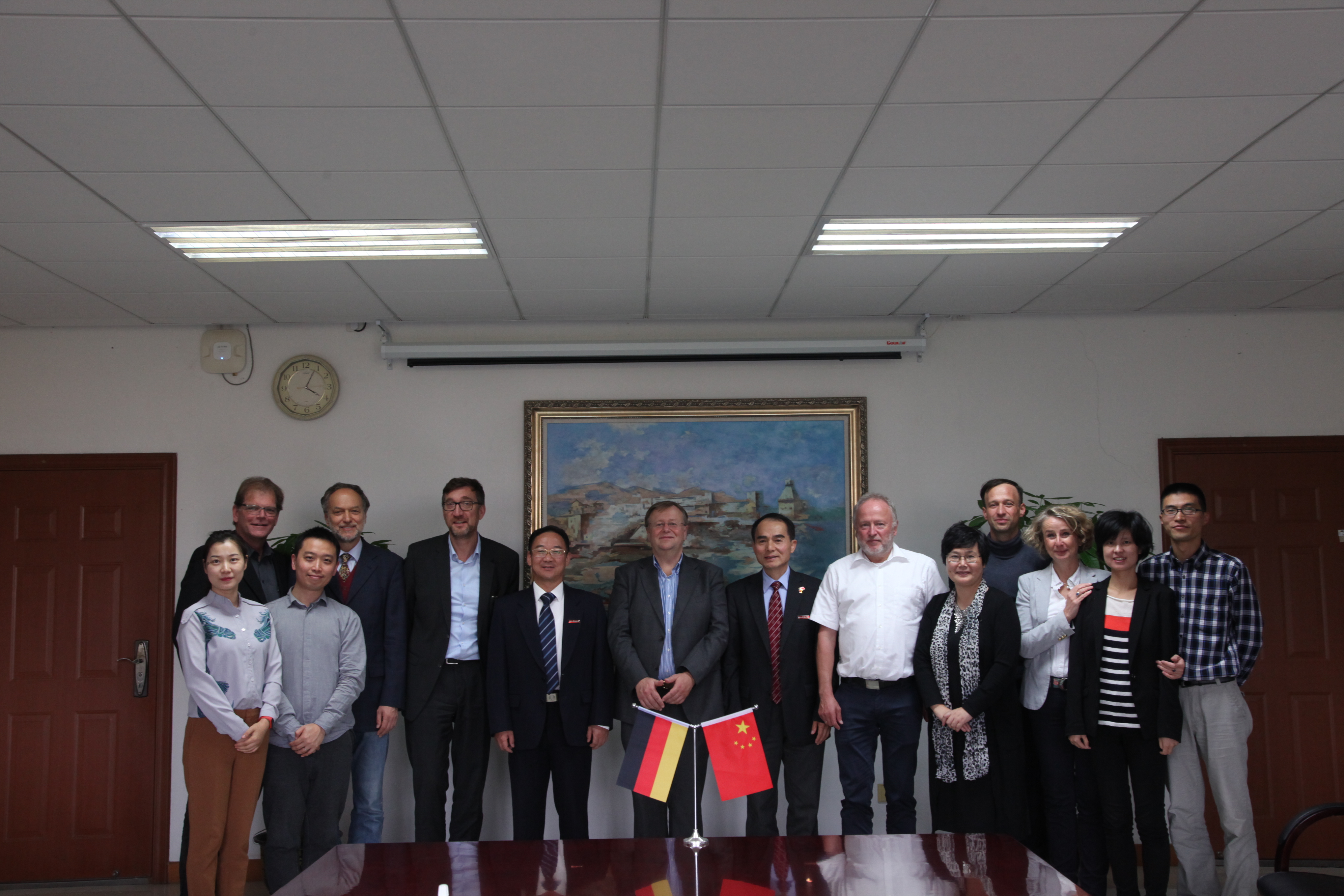 2018年10月31日,av片 第11次联合管理委员会会议在我校召开。校长叶高翔教授、副校长冯军研究员、西海岸应用科学大学校长哈诺·科尔史(Hanno Kirsch)教授、吕贝克应用科技大学副校长弗郎克•施瓦彻(Frank Schwartze)教授、电气专业德方专业负责人德特勒夫•延森(Detlef Jensen)教授、土木专业德方专业负责人玛蒂亚斯•格罗特克(Matthias Grottker)教授、院长徐理勤研究员、教学院长弗兰克·坎普(Frank Kemper)教授、国际处副处长骆均炎教授等联合管理委员会成员参加了会议。