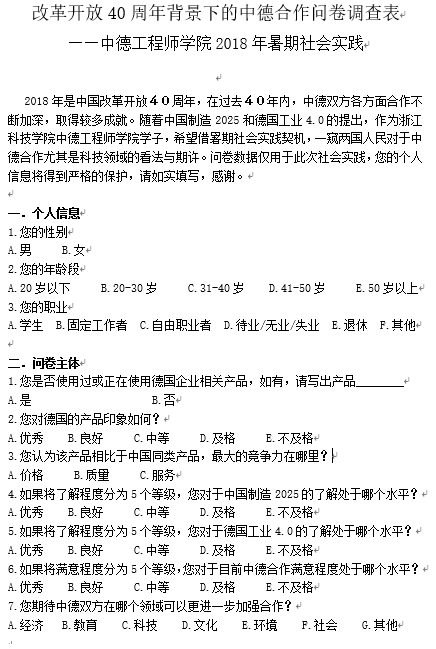 团队中德文调查问卷