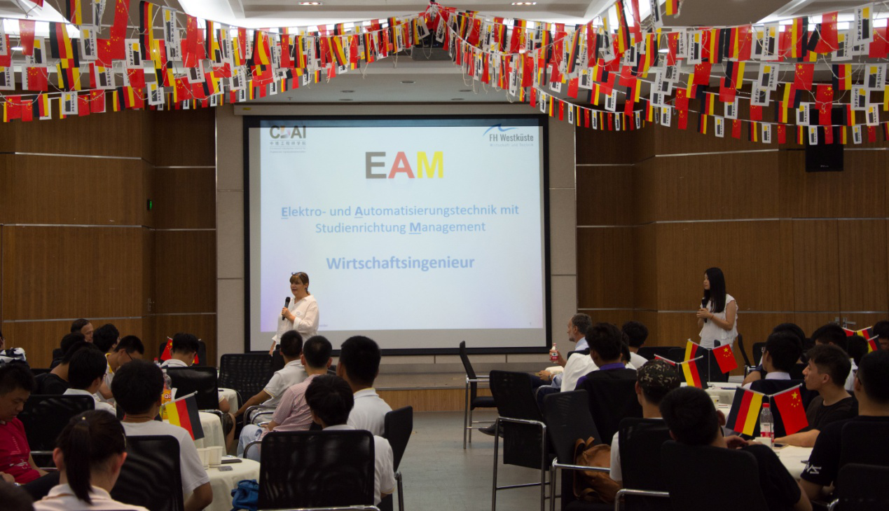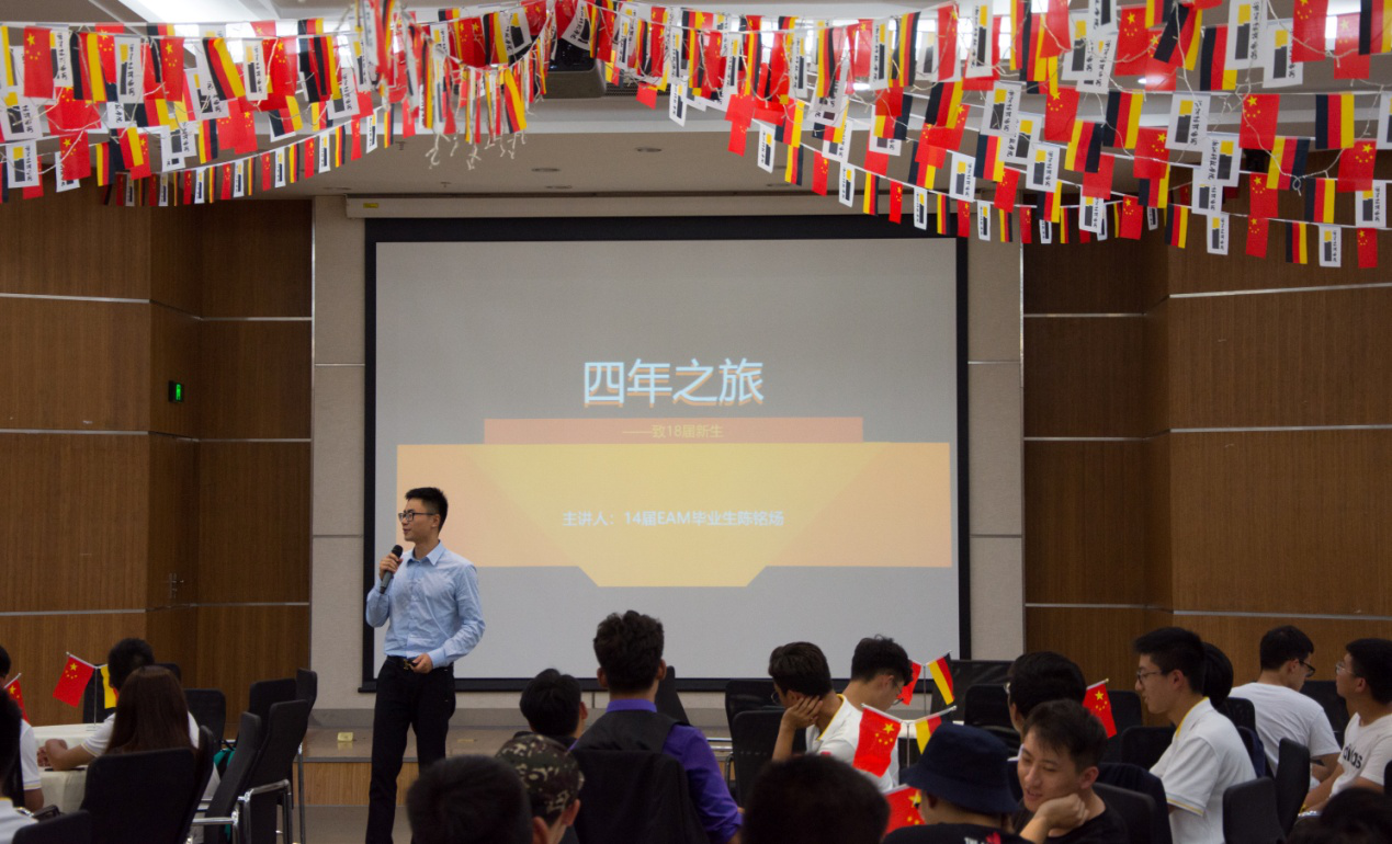 9月19日,学院留徳学习分享会在中德楼B4报告厅顺利召开。分享会的第一部分由德国留学归来的14级陈铭炀(电气)与谢颢(土木)两位同学带来,两位同学从亲身经历出发,带来了中德文化、学习方式和专业上的介绍。在分享会的第二部分,学院教学院长Frank Kemper教授、土木专业德方负责人Matthias Grottker教授介绍了学院的优势以及就土木专业而言未来可能需要面对的挑战,强调了德语学习的重要性;电气专业常驻教师Anja Schneider女士认为电气专业(管理方向)除了掌握本专业知识还要求具备一定的管理能力,是一门要求很高的专业,鼓励大家认真学习。在分享会的第三部分交流环节中,14级海外归来的学长学姐们热情地向在座的18级新生分享在德留学的经验和趣事,强调培养自身的独立意识与能力的重要性。院长徐理勤在最后总结中谈到,去德留学是一段难忘的经历,见过更大的世界才会更加从容的去面对未来,勉励大家把握大学时光,成长为具有国际视野的大学生。留徳学习分享会在欢快的气氛中圆满结束,通过此次高低年级的交流和德方教师们的分享,同学们对于未来的德国学习非常向往。