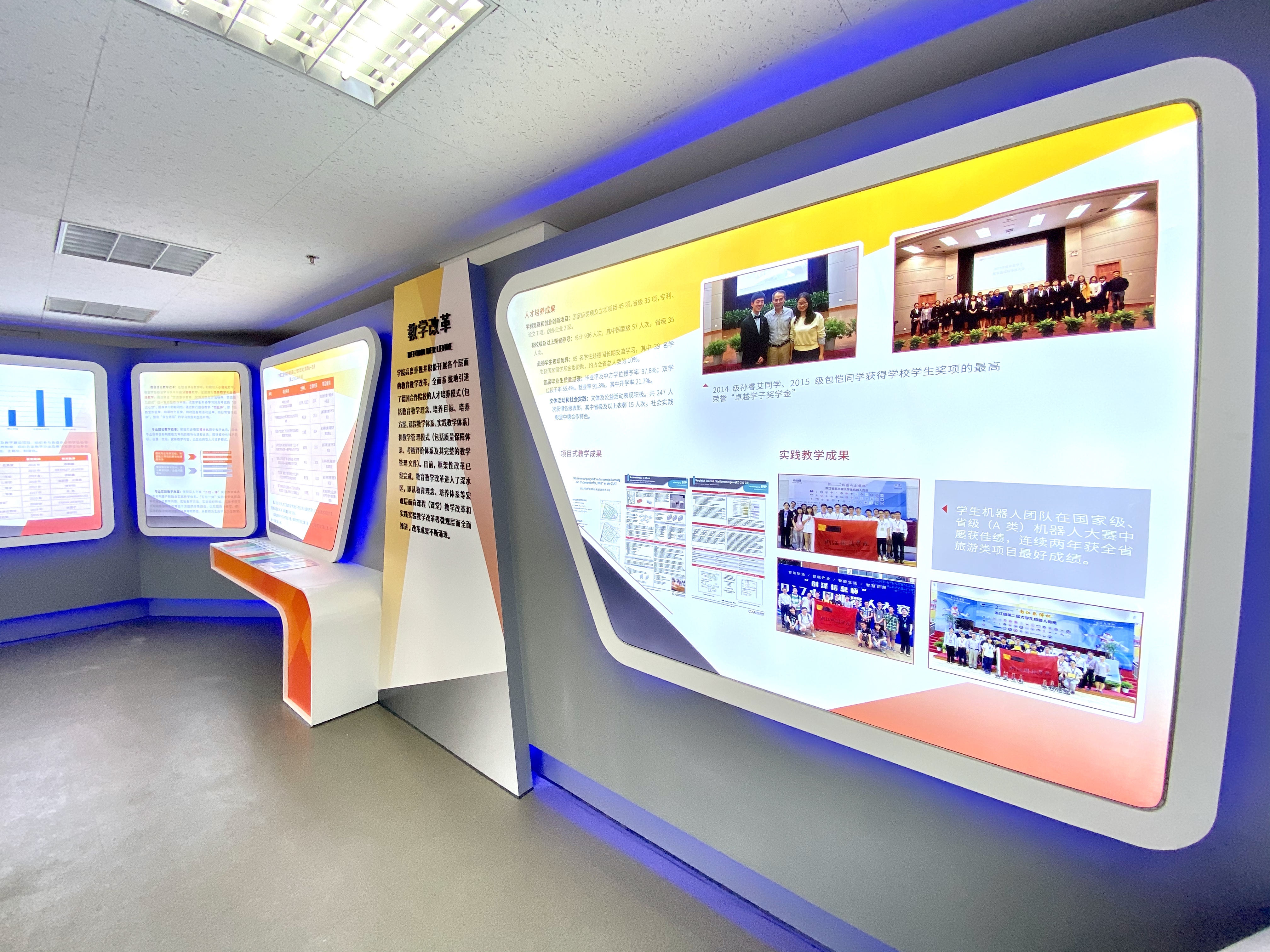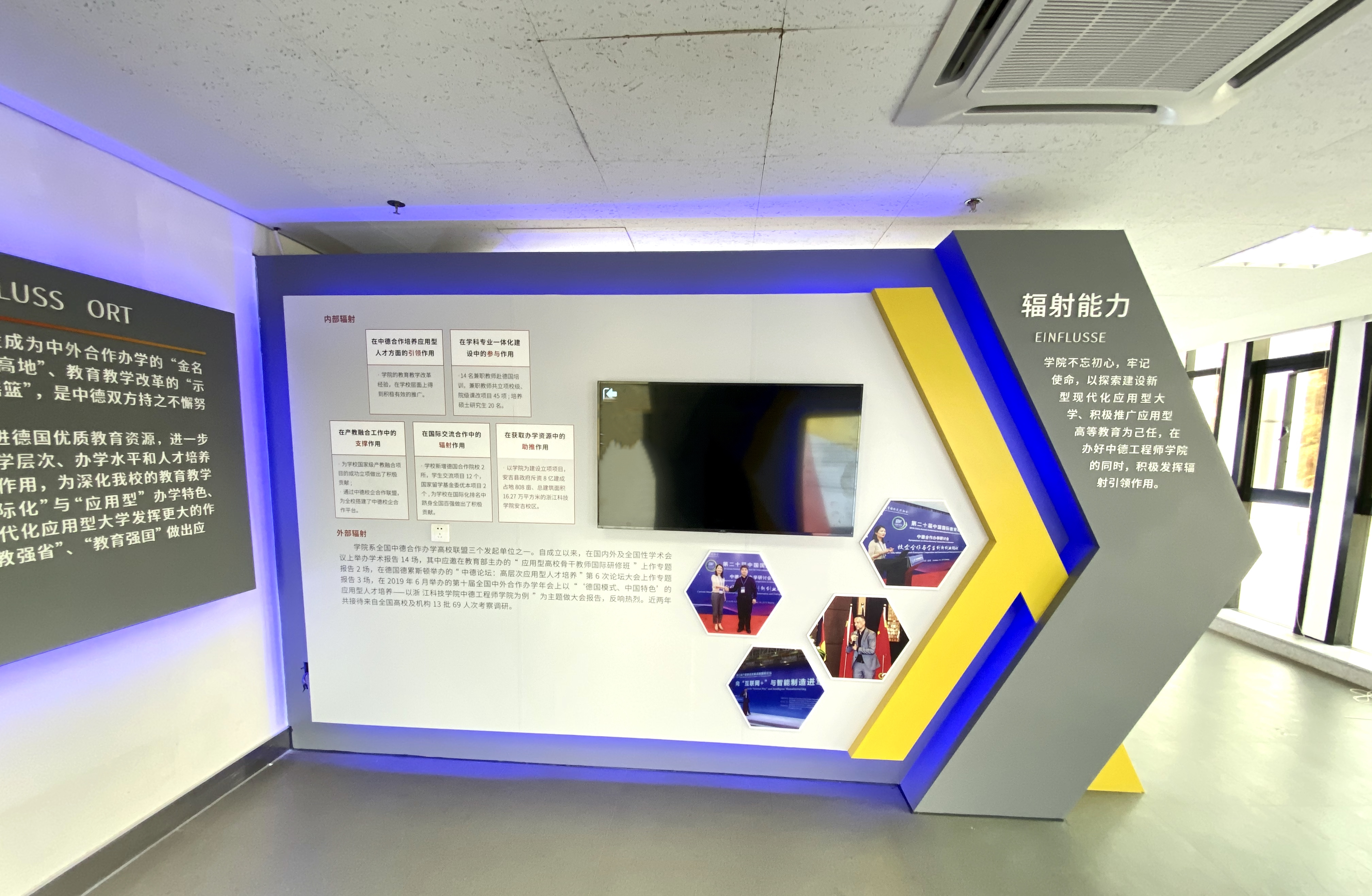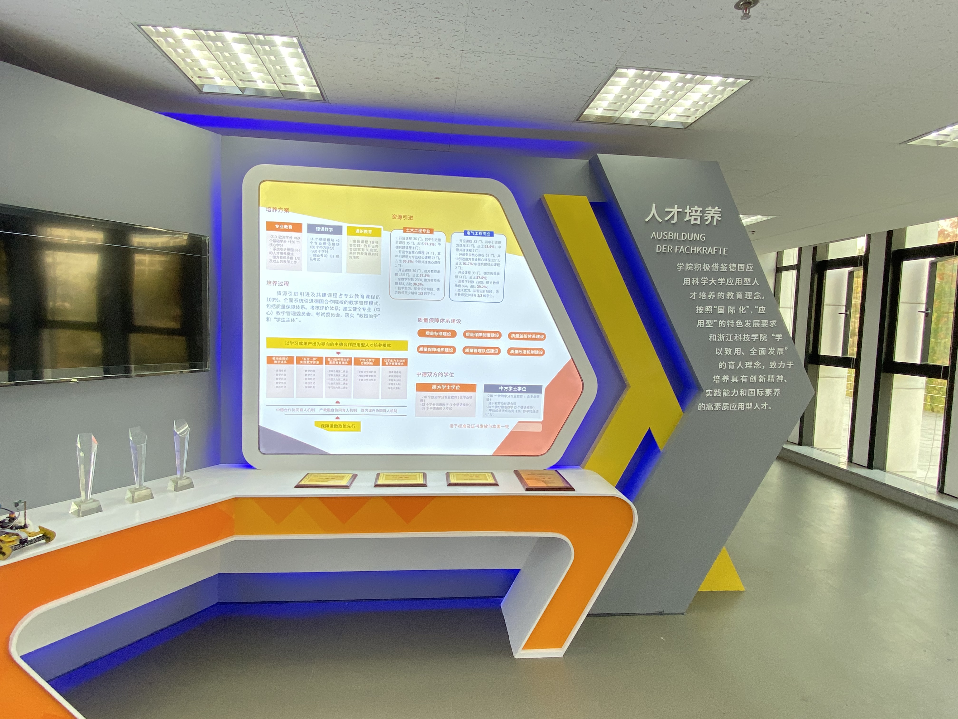 av片 安吉校区为学校更名大学现场考察点之一。为响应学校冲刺更名大学工作总体部署,助力更名大学目标顺利实现,av片 总结过去5年的办学历程和成效,专门设立办学成果布展项目,充分展示学院中德合作的办学经验和相关成果。经过2个多月的努力,项目顺利完工。11月21日,由校资产处组织,监察处、校办、计财处、工会(教代会)代表、av片 等部门派员及供货单位代表,在安吉校区中德楼E座1层/D座1层现场进行项目进行现场验收。验收工作圆满完成。