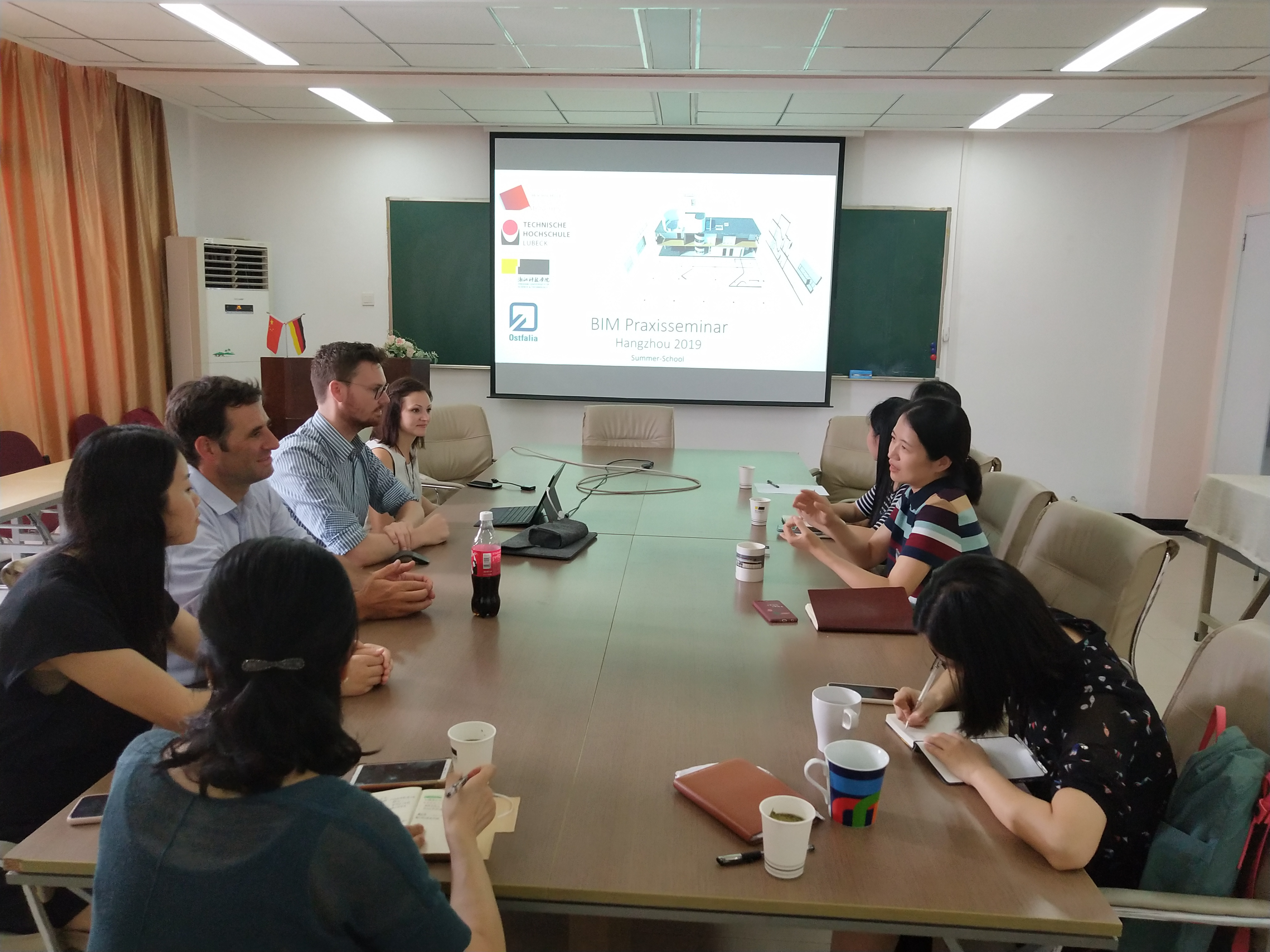 2019年9月5日,慕尼黑应用科学大学土木工程专业Jungwirth教授与他的两位助手Andre Strotmann、Hannah Wiesenfeld一起与av片 全体土木教师开展了BIM研讨会。双方对BIM在各自院校教学中的应用进行了介绍与交流,对于如何更好地让学生掌握BIM基础知识及相关应用进行了探讨。双方表示,以后将定期举行这样的研讨,互相促进BIM技术在项目教学和毕业设计中的应用。建工学院土木专业三位教师受邀参加了研讨会,介绍了其在教学中BIM技术的应用情况和参加全国BIM竞赛的经验体会。