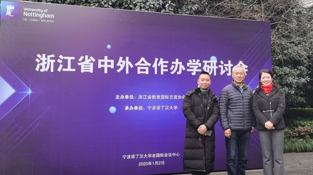 2020年1月2日,由浙江省教育国际交流协会主办,宁波诺丁汉大学承办的首届浙江省中外合作办学研讨会在宁波诺丁汉大学国际会议中心召开。全省近70所本科及高职院校共120余名代表参加了会议。校中德合作委员会副主任、学院联管会成员、学院前任院长徐理勤、学院主持工作副院长薛文、副书记李成炜参加了本次研讨会。