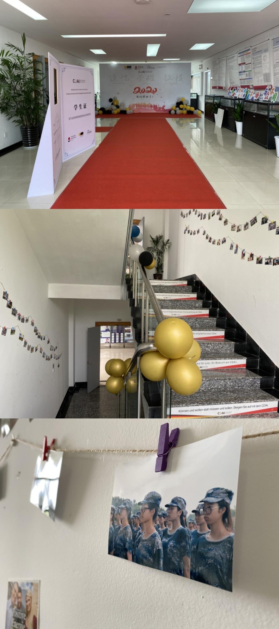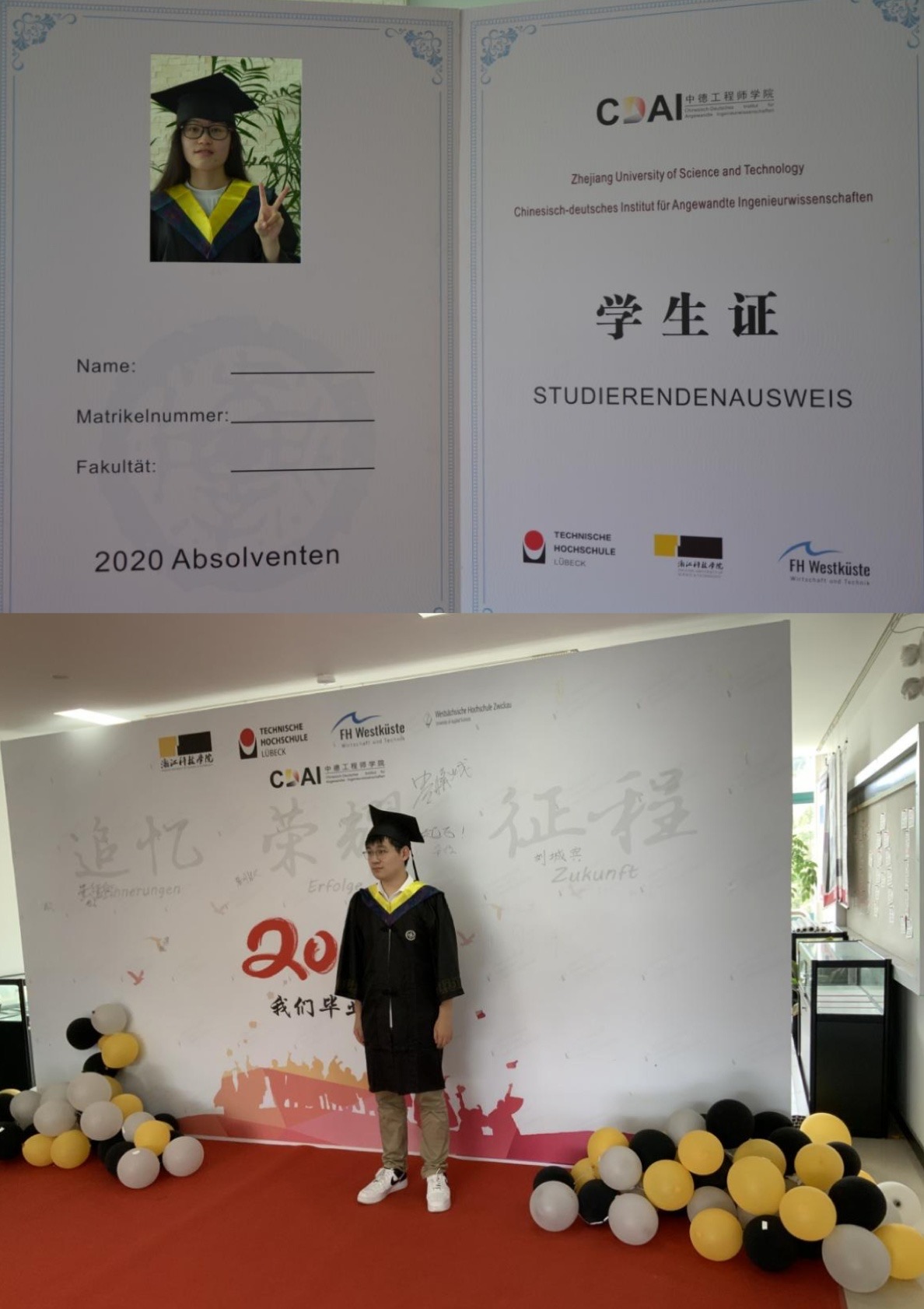 毕业典礼共三个篇章,分别为“追忆”、“荣耀”和“征程”。毕业代表们分享了个人最难忘的故事,回忆大学时期的点滴。范佳静副书记为优秀毕业生代表颁发证书和为校友联络员颁发聘书。薛文副院长身着导师服为学子们拨穗并颁发毕业证书和学位证书、校训纪念章和学院纪念品。由于疫情关系,两所合作院校的德方教师没能来到现场,但他们也通过视频向毕业生们发来了诚挚的祝福。学工负责人李成炜副书记为大家带来了最后一堂课,他回顾了四年期间的学生活动,职业规划和出国交流几个方面,从近期毕业至长期发展向同学们提出了期许。最后薛文副院长总结发言,她结合自身情况,鼓励大家离校后多学本领、长才干,用更大的正能量走好未来每一步。