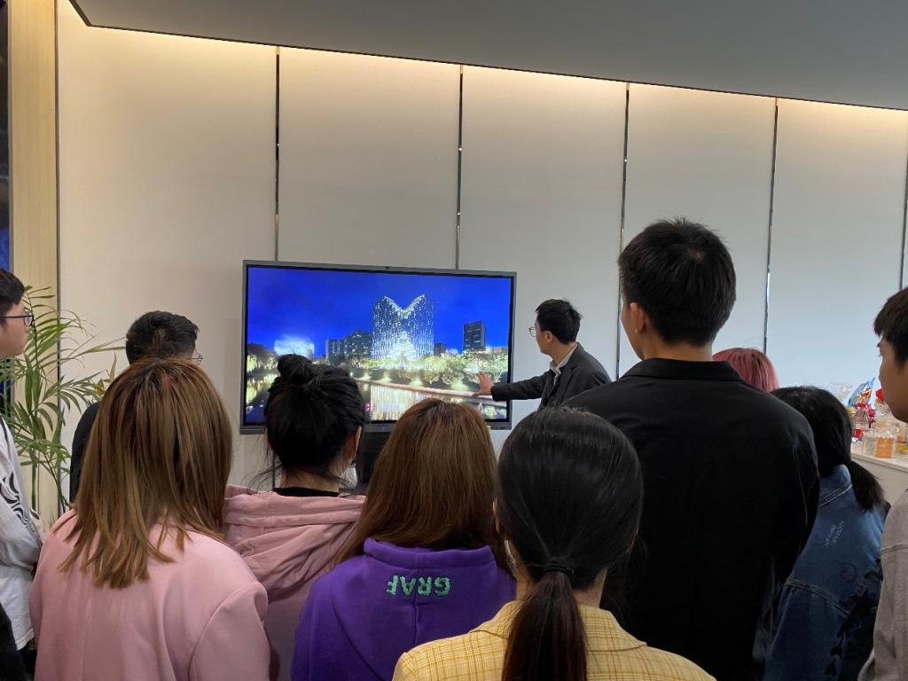 首先,同学们分为两组参观了该公司的文化展厅,让同学们对公司的发展历程、av片、产品业务等有了深入直观的了解。紧接着,在几位设计所所长的带领下,同学们观看了部分优秀的设计作品,观摩了各所员工们的现场作业,感受了现场的工作环境。最后,公司专门邀请了设计研究院方案设计所所长童鹏飞为同学们更加详实地介绍了公司的一些情况,同时,人力资源部总监汪黎霞女士也详细介绍了公司的岗位需求,并与同学们进行了现场答疑互动。同学们纷纷咨询了暑期实习与毕业后就业相关问题,互动现场气氛热烈。