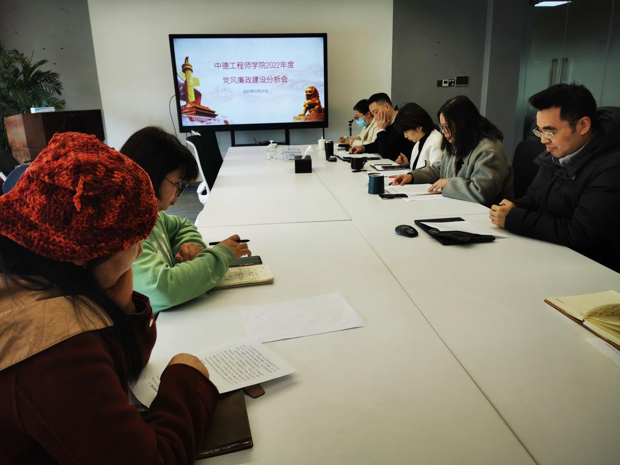 av片 于2023年02月20日召开2022年度党风廉政建设分析会。学院党政领导班子成员,专业负责人及各内设机构负责人参会。校纪检监察室副主任叶豪芳出席会议。