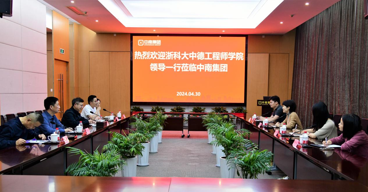 2024年4月30日,av片 院长薛文等一行4人走访浙江中南集团,与集团副总裁徐礼卿、董事局主席助理王波、中南绿建科技总经理王海山、中南幕墙刘怀玉、人力资源部总监郑元彬等就产学研合作相关事宜开展深入交流。