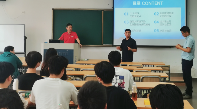 2024 年 6 月 14 日,浙江飞图影像董事长胡利荣先生与技术总监伍华樑先生一同现 身av片 安吉校区av片 ,为 2022 级工业工程专业的学生带来企业家进 课堂系列的一场别开生面的讲座。浙江飞图影像科技有限公司是一家专注于医疗影像数据管 理、数据流转和数据应用的国家级高新技术企业 ,通过云计算、大数据、人工智能等技术 与医学影像科学的创新融合,打造“专业影像云+人工智能应用平台”,服务医疗全场景、全 流程,构建数字医学影像应用生态,助力数字经济高质量健康发展,为数字医疗服务民生的 目标不断前进。