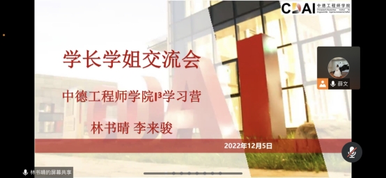 活动从下午五点钟开始,以线上视频会议的形式进行。首先,学院院长薛文老师热情地向同学们介绍了林书晴学姐和李来骏学长,两位学长学姐目前在德国TU9之一的汉诺威大学攻读硕士学位。随后,薛文老师向同学们阐述了学院有关于留学德国的多种可供选择的项目和它们的大致规则。之后,以大家发言的形式进行提问,由两位学长学姐来解答大家的疑问,整个问答环节主要围绕德国的学业情况、生活环境、德国读研、安全保障、各项费用等展开。一个半小时的会议时光如白驹过隙,言语之间,为大家勾勒出了一幅美好的留德学习畅想图。