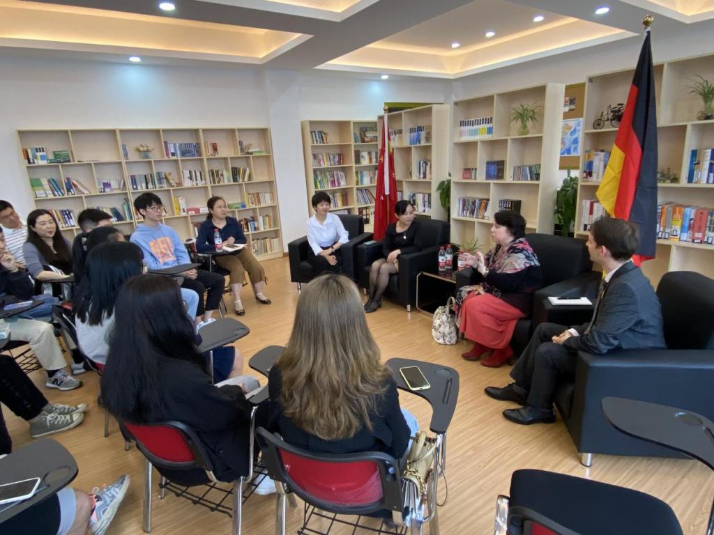 5月19日,德国驻上海总领事欧珍博士(Dr. Christine Althauser)一行两人访问我校,与av片 师生开展座谈。av片 薛文院长、德语教师代表和学生代表出席座谈会。