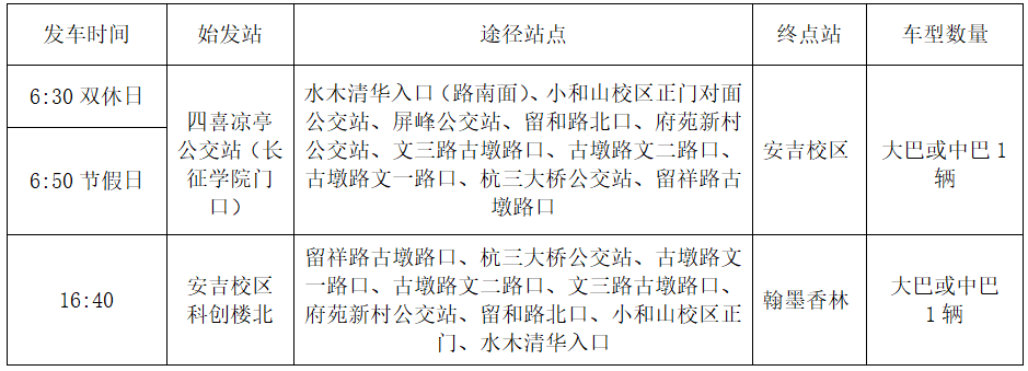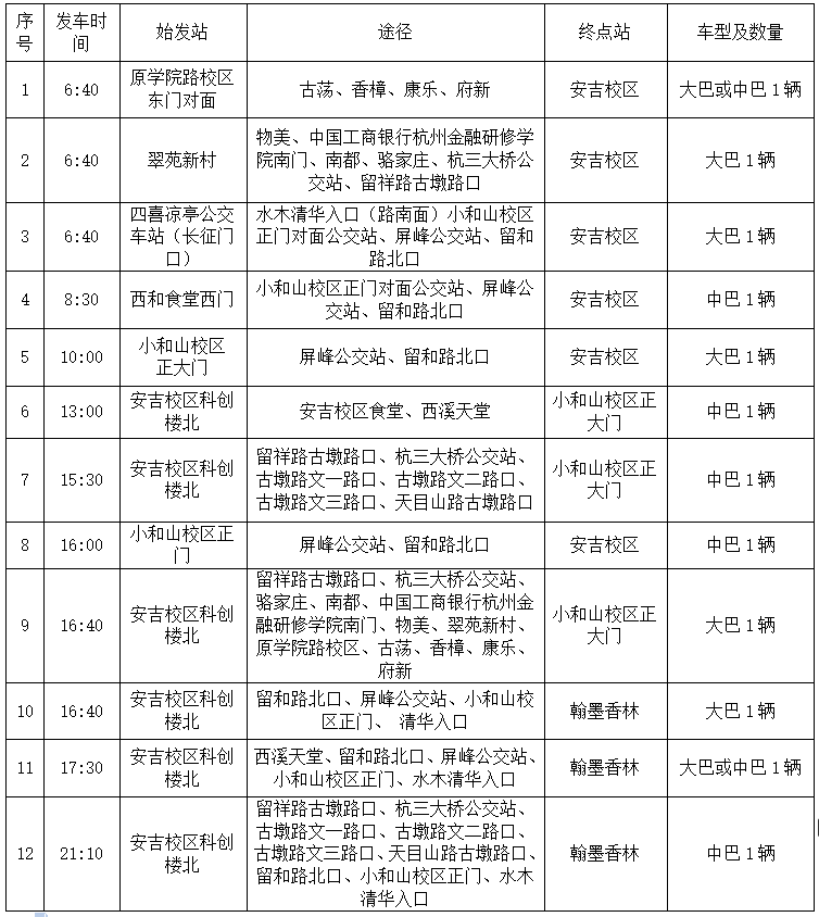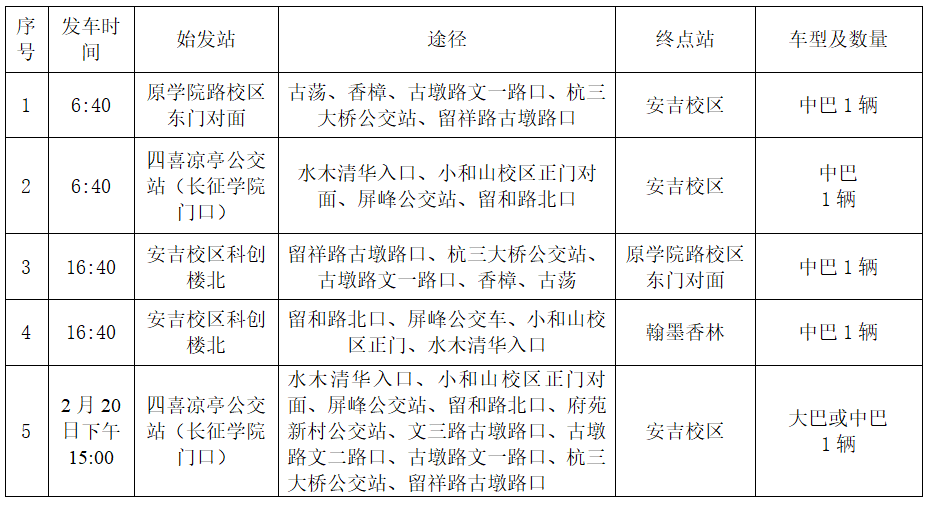 1.2022年2月20日起每周日下午15:00小和山校区出发至安吉校区的应急班车正常运行。