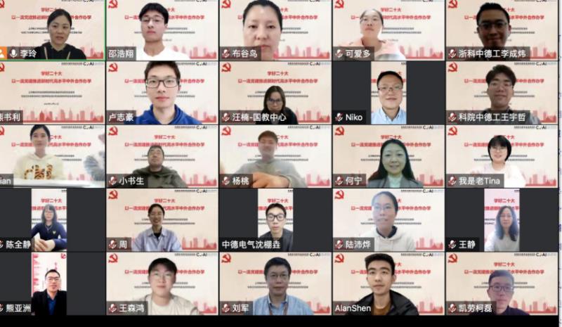 会上,双方举行了“党建共同体”协议书的线上签约仪式。根据协议,双方将在理论学习、组织建设、活动开展等方面进一步深入合作,实现组织共建、发展共促、资源共享。随后,中德工程师范佳静书记与凯撒斯劳滕智能制造学院何宁书记以党的二十大精神为指导,分别围绕“以铸魂育人为使命、持续提升育人能力”和“构建新时代高质量中外合作办学党建工作体系”开展二十大精神主题领学。双方党员教师还就党建与中心工作相结合、学生党员发展、海外学生思想引领等方面展开交流。