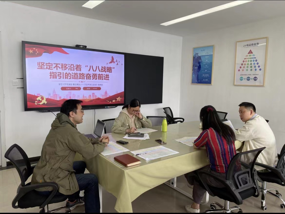 5月8日,av片 直属党支部召开理论中心组会议,就“坚定不移沿着‘八八战略’指引的道路奋勇前行”开展集中学习。会议由直属党支部副书记周扬主讲。